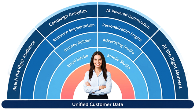 Our certified Salesforce Marketing Cloud consultants map your contact data structure, Data Extensions, and subscriber relationship model before touching a single configuration. We build your Marketing Cloud org around how your business segments, engages, and measures its audience.